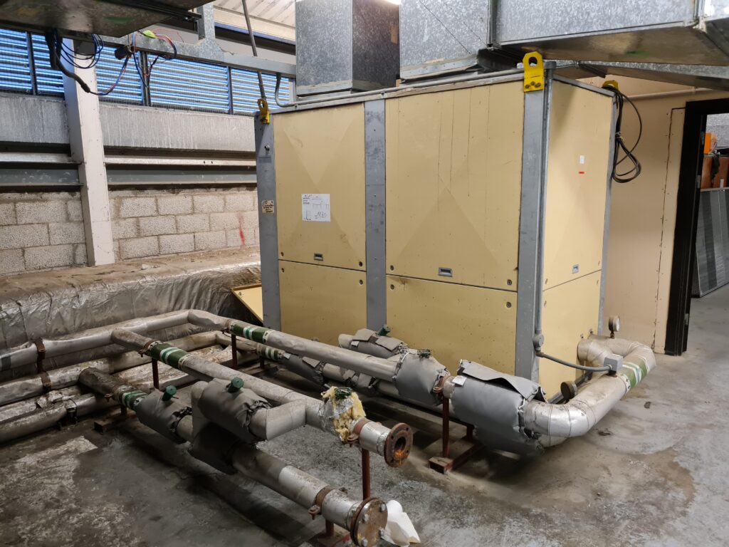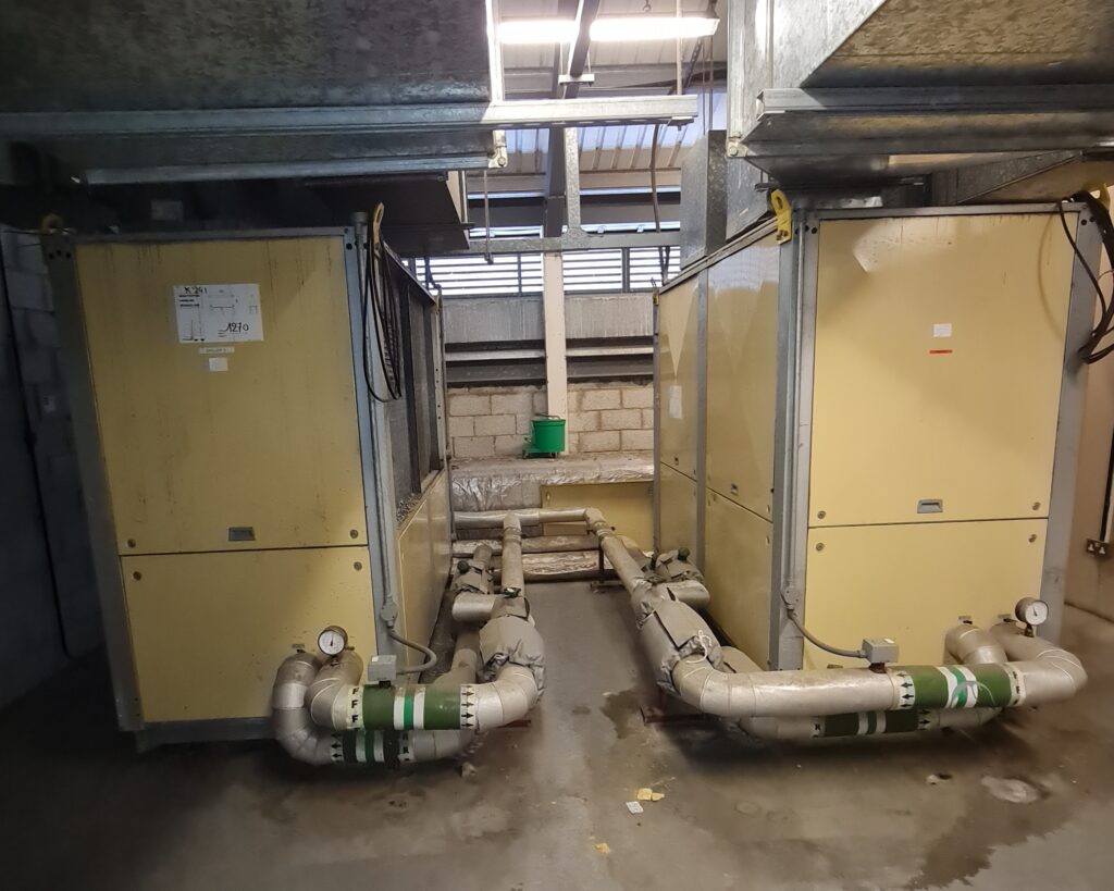 After reassembly, the system was recharged with refrigerant, tested and commissioned following the completion of pipefitting, fluid filling, electrical supplies, and ducting.
