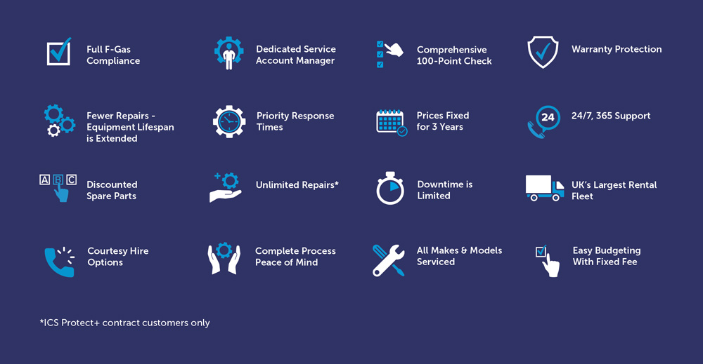 ICS Service, ICS Service+, ICS Protect and ICS Protect+, offering partial to full coverage for all brands and models of temperature control equipment.