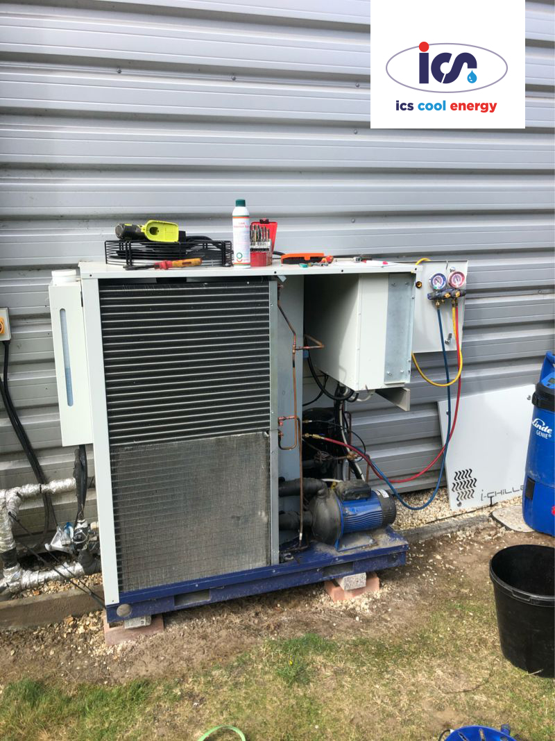 Een van onze monteurs heeft de condersor vervangen en de chiller weer volledig operationeel gekregen.
