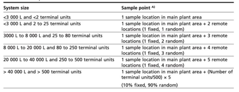 In recognition of volume size, and increased variability, guidance (**BG 50) recommends an increase in sample locations for a more holistic overview. Below is an extracted table referenced in BG 50 guidelines, which lists how increasing volumes are met by a wider sampling scope: